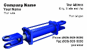 This is a traditional blue hydraulic cylinder like the kind used on mechanical equipment. |